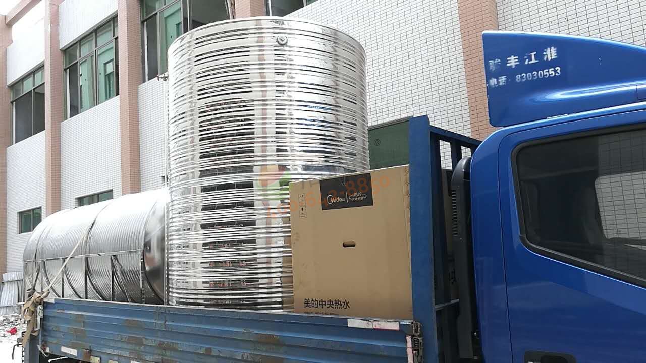 RSJ-200/MS-540V1(5P)美的空氣能熱泵主機1臺、5噸圓形立式不銹鋼保溫水箱1個臺及相關配套設施