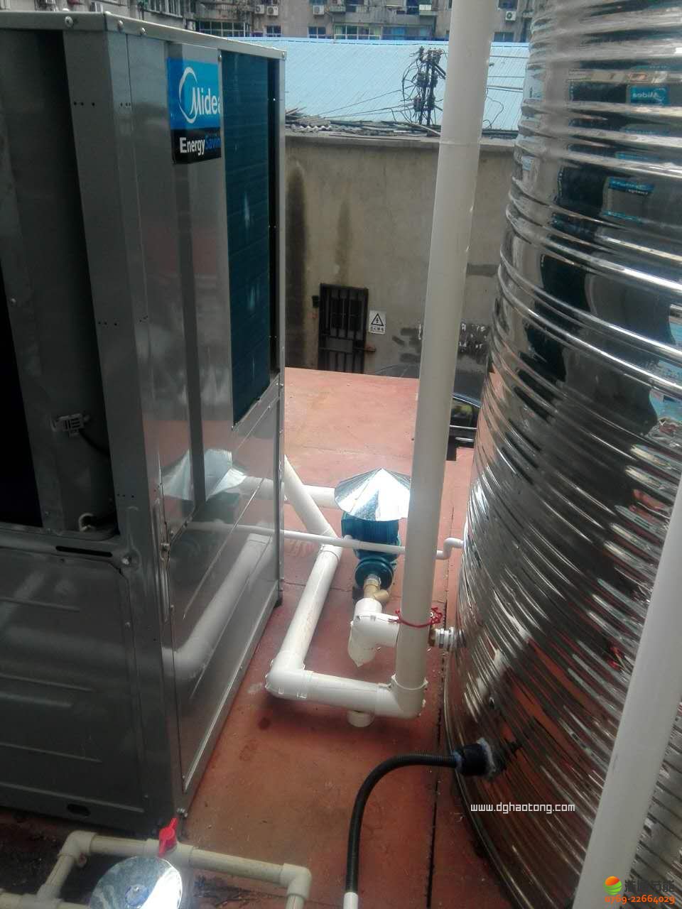 湖北黃石如家酒店10匹10噸美的空氣能熱泵熱水工程項目——水泵防水