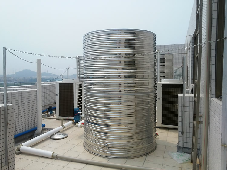 廣州速爾物流15噸浩通空氣能熱泵熱水工程保溫水箱安裝效果